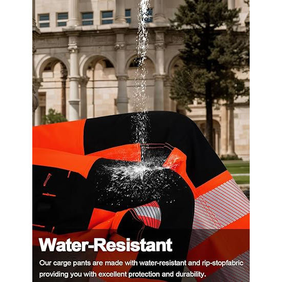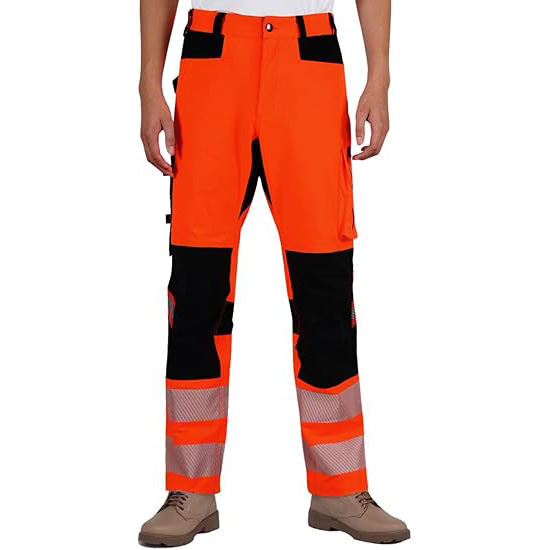กางเกงคาร์โก้สะท้อนแสง Hivis สวมใส่สบาย ทนทาน เหมาะสำหรับงานก่อสร้าง ชุดทำงานสำหรับผู้ชาย