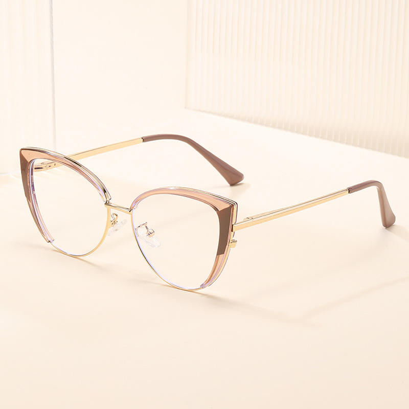 Hl-81103 กรอบแว่นตาแบบแคทอาย พลาสติกและโลหะ ป้องกันแสงสีฟ้า สำหรับผู้หญิง ความกว้างกรอบขนาดกลาง บริเวณจมูกมาตรฐาน
