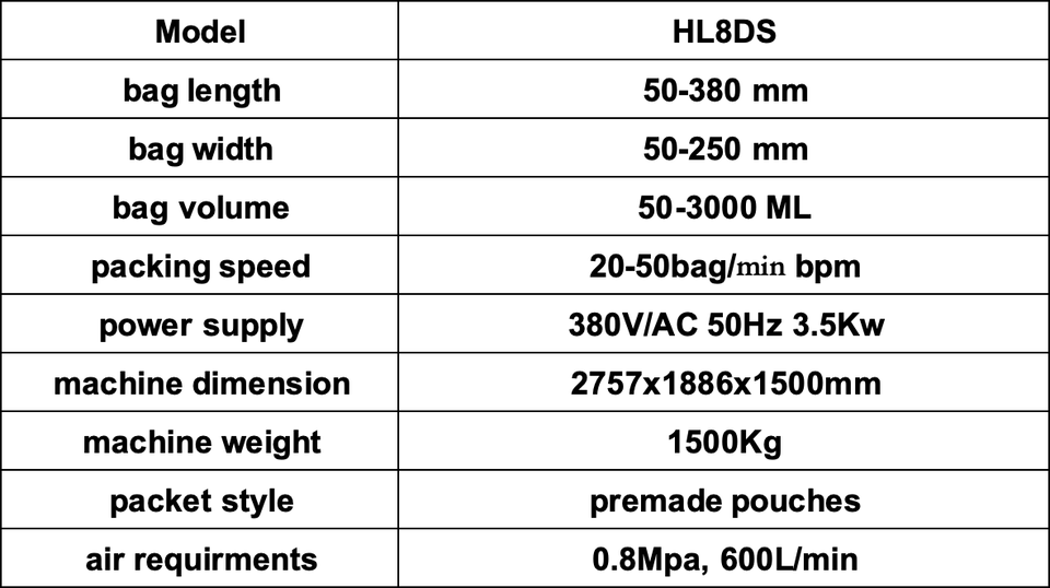 เครื่องบรรจุและปิดผนึกแบบอัตโนมัติ Hl8Ds 50-3000 มล. 50 ถุง/นาที สำหรับบรรจุภัณฑ์อาหาร เกรดอาหาร ความแม่นยำสูง สำหรับบรรจุของเหลว น้ำยาซักผ้า ฟิล์ม/ฟอยล์/กระดาษ