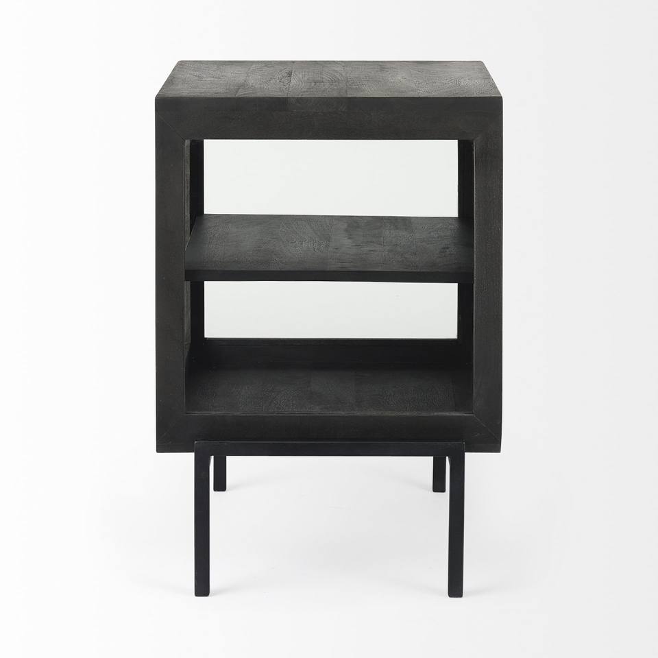 Hms 26\" Black and Brown Solid Wood Square End Table