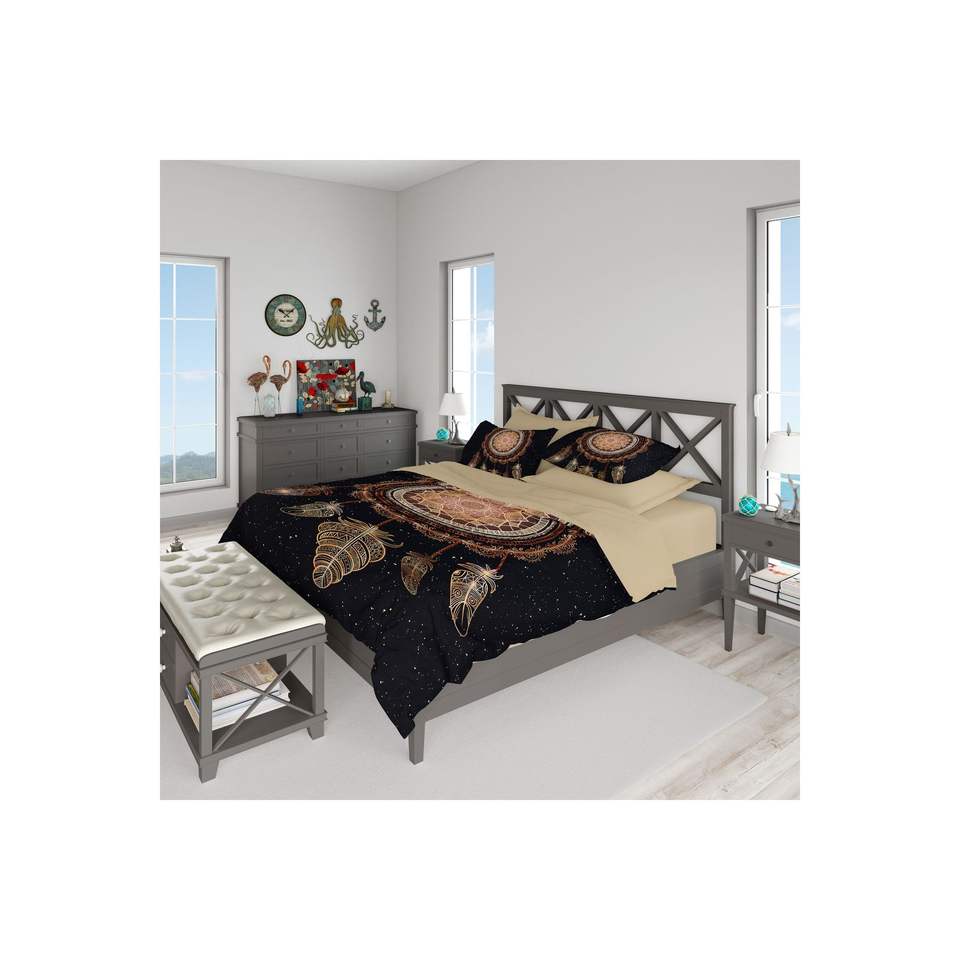 ชุดปลอกผ้านวมขนาดคิงไซส์พิมพ์ลาย3D Hmy-9 Dream Catcher หมอน2ใบลายพืชเรขาคณิตผ้าฝ้ายทอ