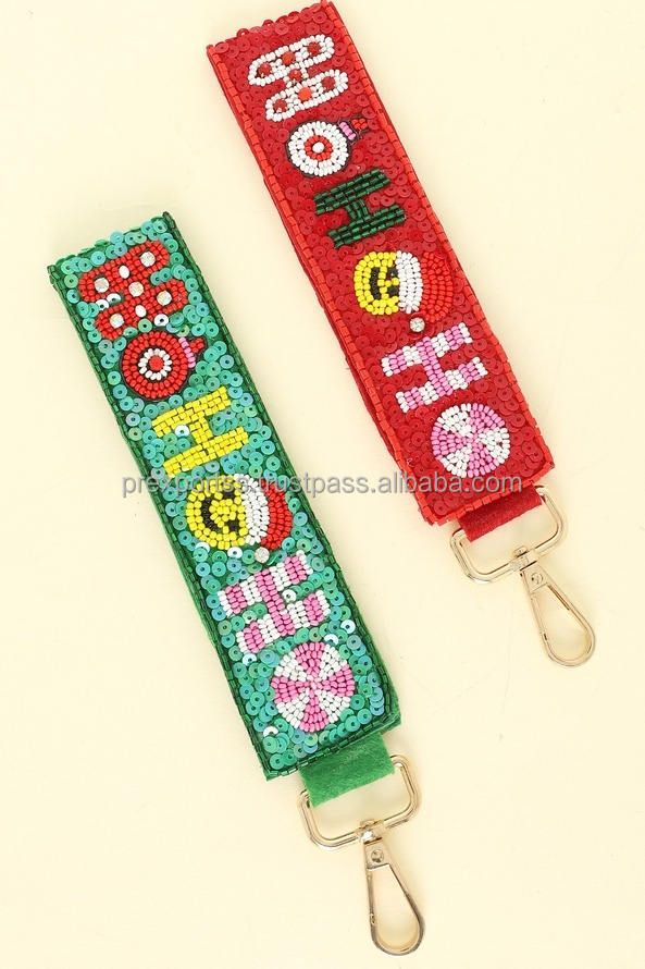 พวงกุญแจปักลายสไตล์ Ho Ho Ho Ho Ho พวงกุญแจคริสต์มาสประดับลูกปัดสำหรับห้อยข้อมือประดับเลื่อมเป็นมิตรกับสิ่งแวดล้อมน้ำหนักเบาอุปกรณ์เสริมกระเป๋า