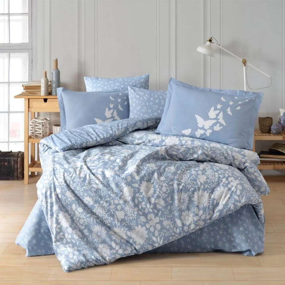 Hira สีน้ำเงินคู่ปลอกผ้านวมผ้าปอปลินสำหรับงานอดิเรกชุดอุปกรณ์สำหรับห้องนอนที่หรูหรา