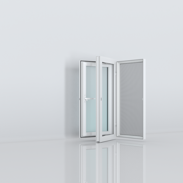 หน้าต่างกระจกพร้อมมุ้งลวดกันแมลง