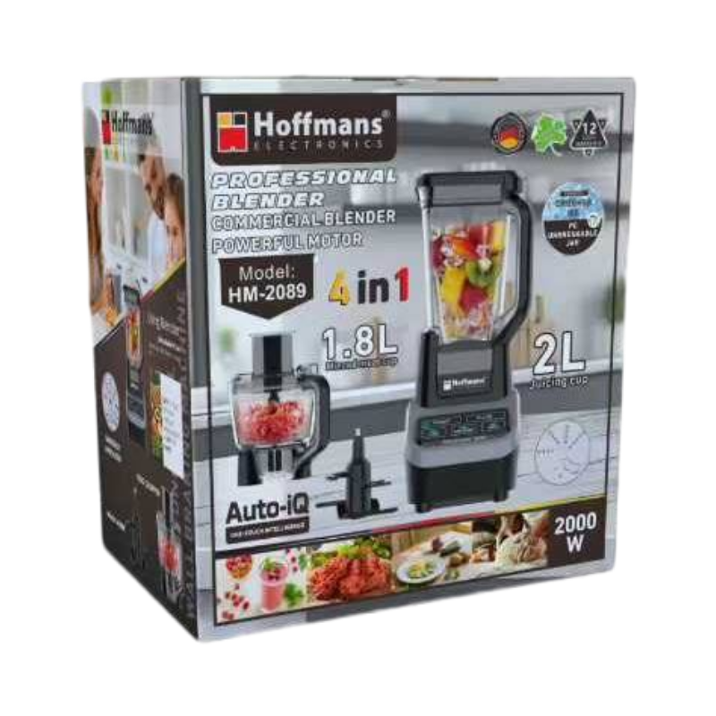 เครื่องปั่นอเนกประสงค์ Hoffmans 2000W รุ่นเชิงพาณิชย์ 4 in 1 พร้อมโถปั่นขนาด 2 ลิตร ทนทานต่อการแตกหัก เครื่องบดเนื้อ 1800 มล. ระบบ Auto IQ จัดจำหน่ายในแอฟริกา