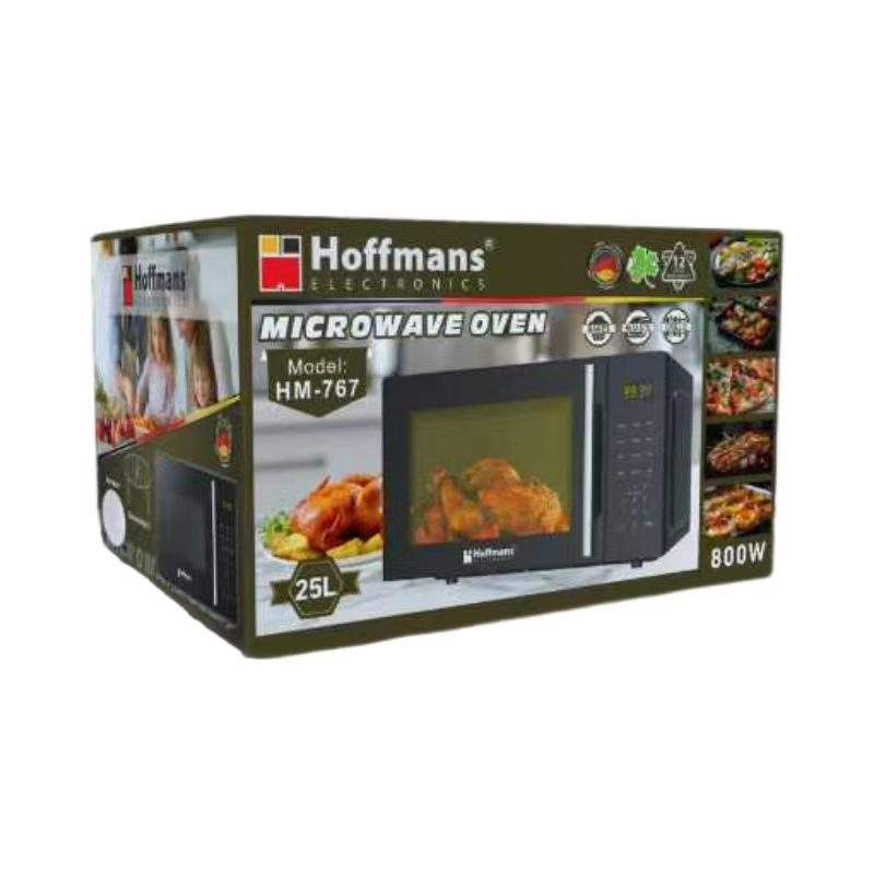 เตาไมโครเวฟดิจิตอล Hoffmans ขนาด 25 ลิตร พร้อมฟังก์ชั่นย่าง 800 วัตต์ แผงควบคุมแบบสัมผัส เมนูอัตโนมัติ สีดำ เครื่องใช้ไฟฟ้าในครัวสำหรับแอฟริกา