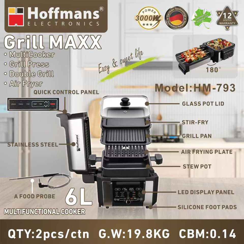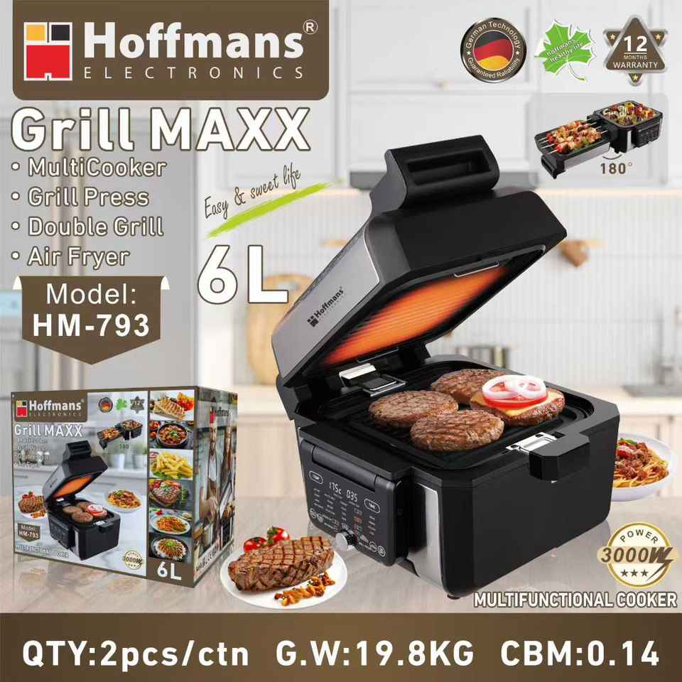 หม้อหุงข้าวอเนกประสงค์ Hoffmans Daily Use 6 ลิตร สำหรับทำสเต็ก พิซซ่า ปลา โยเกิร์ต กำลังไฟ 3000 วัตต์ เครื่องครัวไฟฟ้าทำอาหารเร็ว