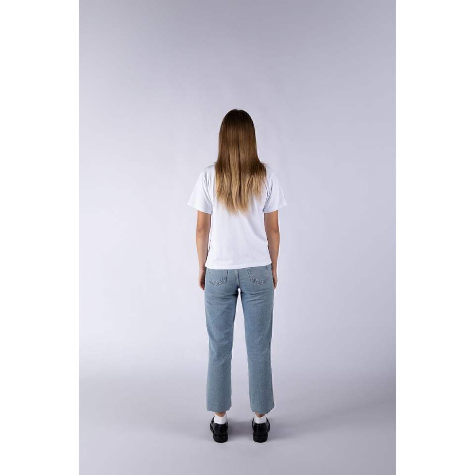 เสื้อยืดคอกลมสีขาวพื้นฐานสำหรับผู้หญิง Hohep ผ้าฝ้าย 100% พิมพ์ลาย เนื้อผ้านุ่ม ทรงโอเวอร์ไซส์ แขนสั้น สไตล์วินเทจ/ซีดจาง ชุดกีฬา