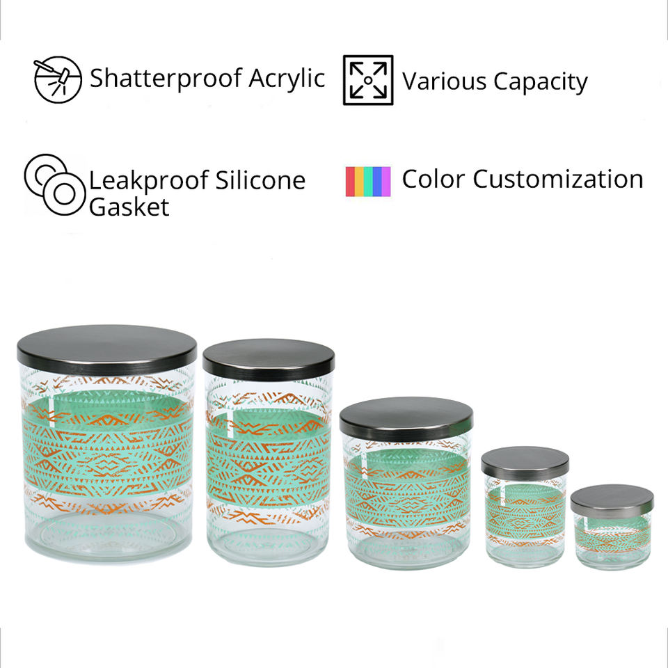 [Holar] Taiwan Made Leak- Proof Durable Cylindrical Designed Grey Lid Acrylic Canister Can with Green Printing