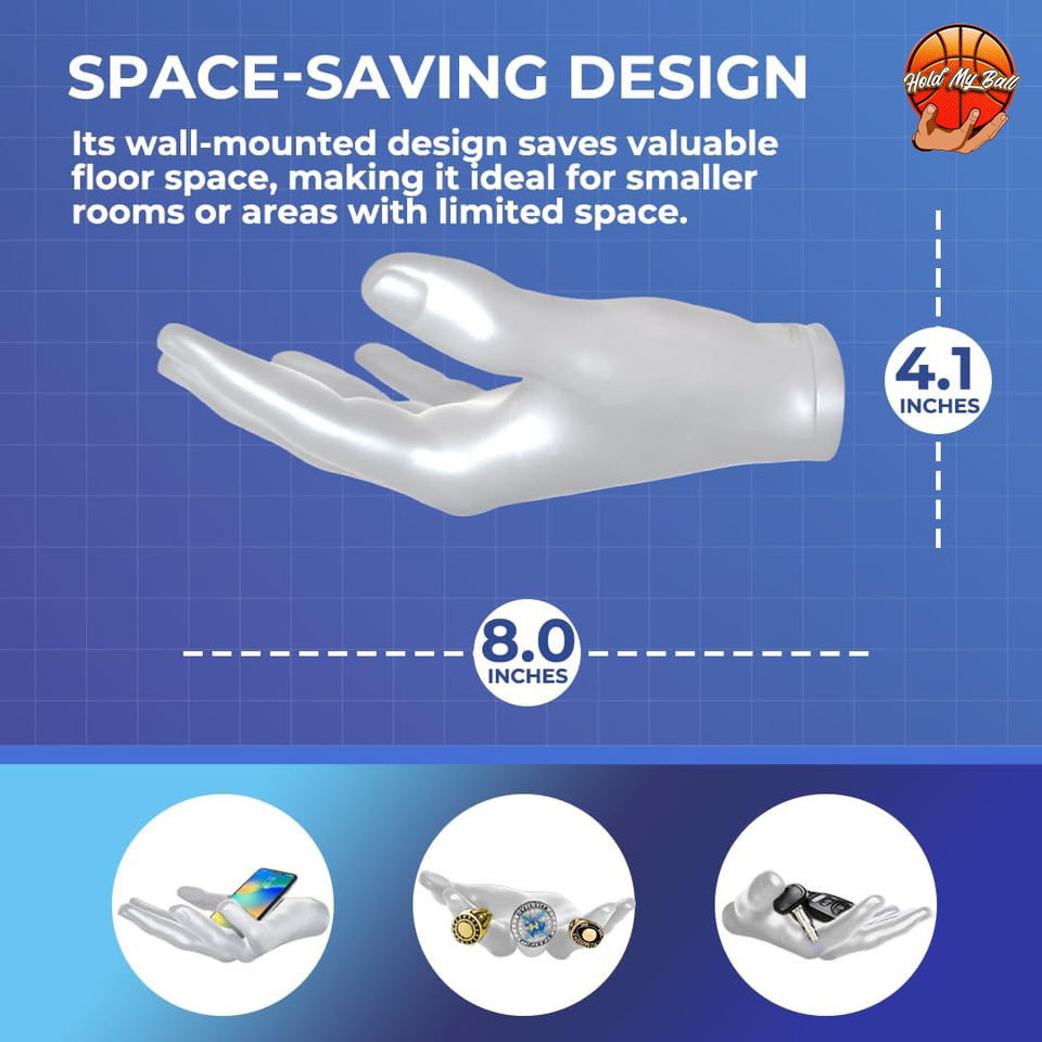 ที่วางลูกบอลเรซิ่นสีขาวขัดเงาแบบพกพาติดผนังได้ทั้งซ้าย/ขวา สำหรับบาสเกตบอล วอลเลย์บอล ฟุตบอล