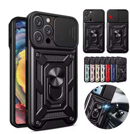 เคสกันกระแทกพร้อมขาตั้งสำหรับ iPhone 16 15 14 13 12 11 Pro Max XS XR 8 7 Plus พร้อมวงแหวนป้องกันเลนส์และที่ยึดแม่เหล็ก