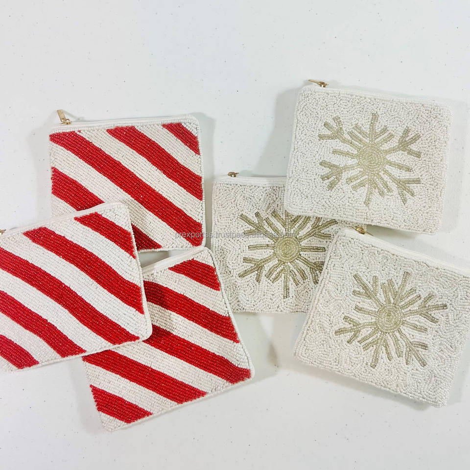 ชุดกระเป๋าใส่เหรียญประดับลูกปัดสำหรับวันหยุด กระเป๋าคลัทช์ทำมือแบบแม่เหล็ก ลายลูกกวาด ลายเกล็ดหิมะ ลายหัวใจ ทนทาน พับได้ กระเป๋าถือแบบลำลอง