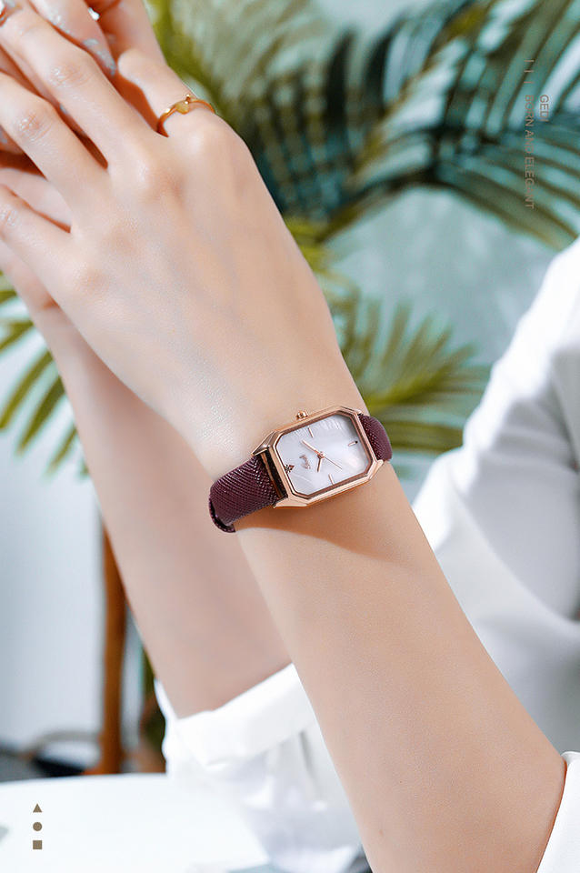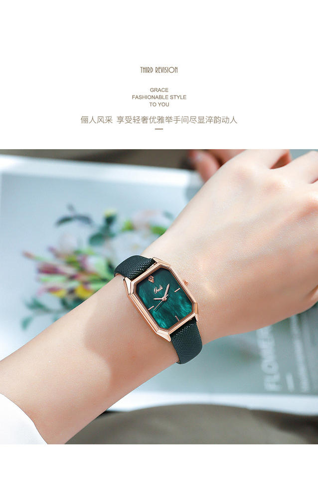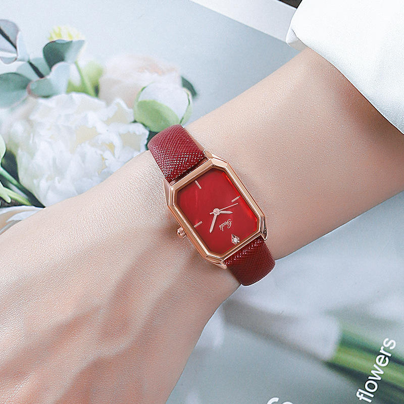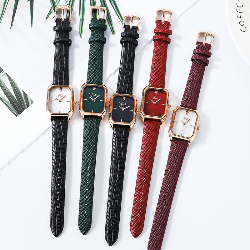 วันหยุดคริสต์มาสนาฬิกาผู้หญิงสายหนังทรงสี่เหลี่ยมอินเทรนด์กันน้ำลำลองควอตซ์