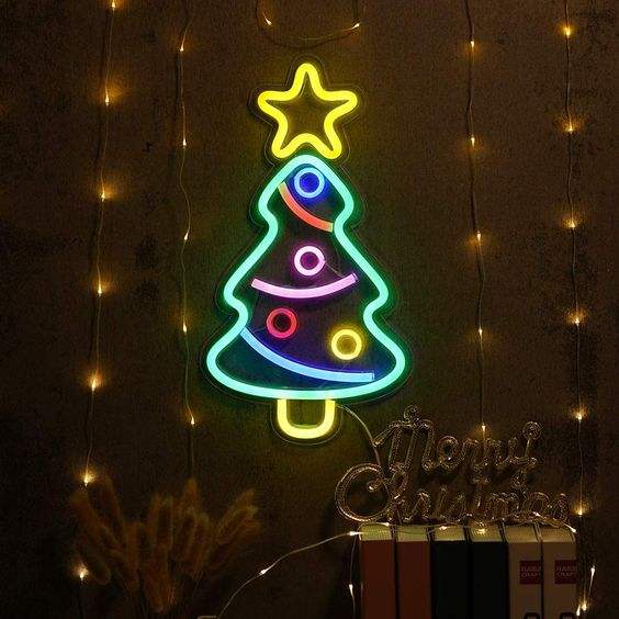 ป้ายไฟนีออนซานตาคลอสสำหรับตกแต่งผนังป้ายไฟคริสต์มาสอีฟ
