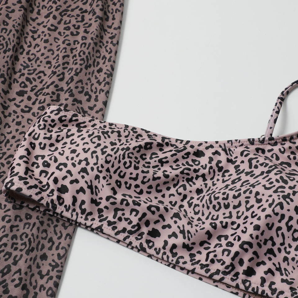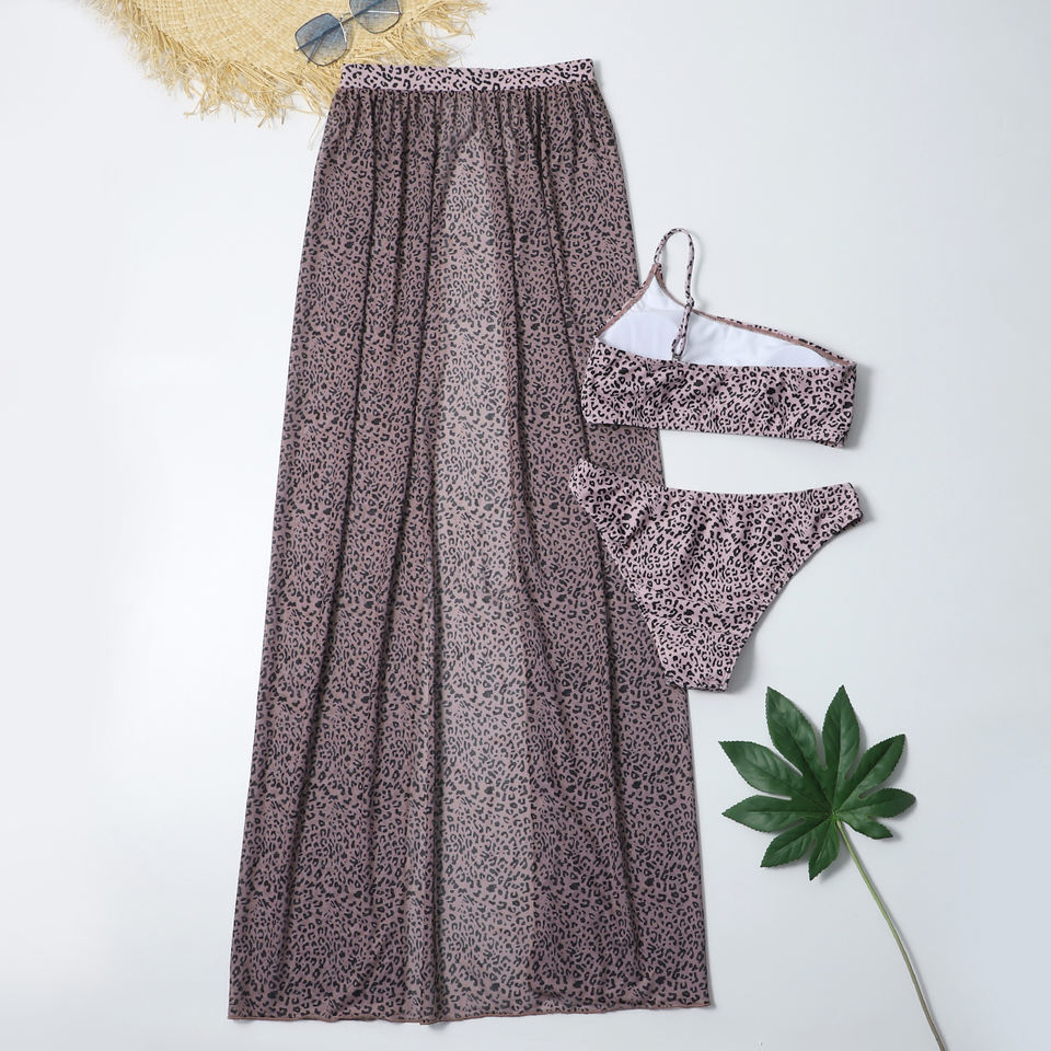 ชุดว่ายน้ำบิกินี่ 3 ชิ้น ลายเสือดาว มินิเซ็กซี่ เปิดไหล่ข้างเดียว กระโปรงยาว ขาสูง เหมาะสำหรับเป็นของขวัญวันหยุด
