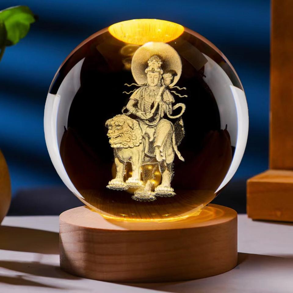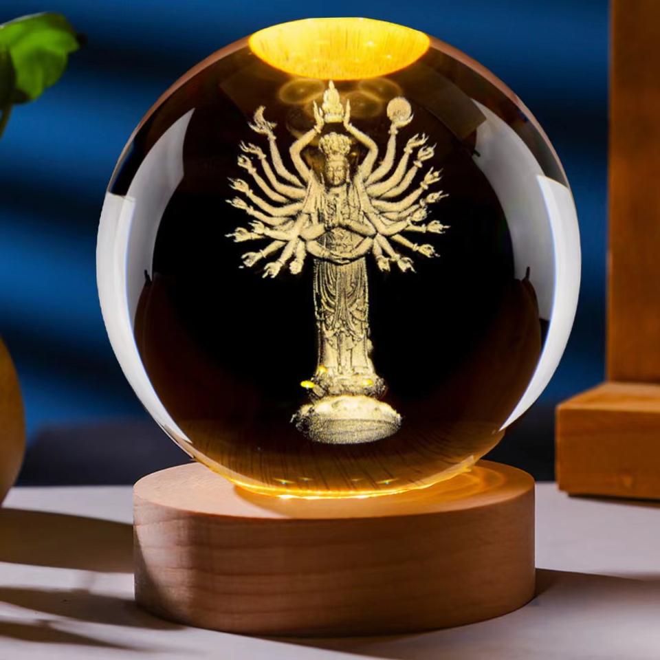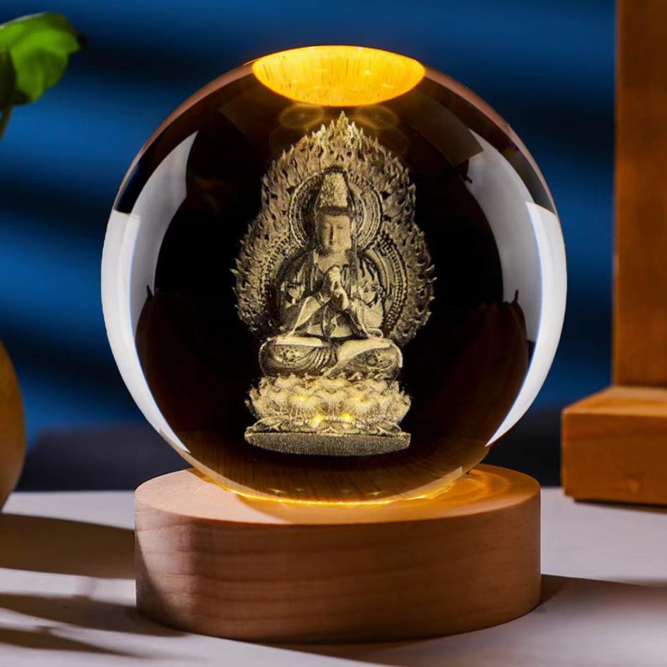 อุปกรณ์จัดงานปาร์ตี้วันหยุด งานแต่งงาน พระพุทธรูปเจ้าแม่กวนอิม/ฟูโด มิยู ลูกแก้วคริสตัลแกะสลักลวดลายประณีต ขายตรงจากโรงงาน