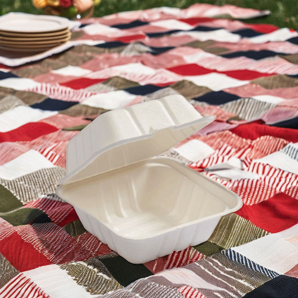 กล่องอาหารแบบฝาพับแบบใช้แล้วทิ้งแบบองค์รวมทำจากเยื่ออ้อยสำหรับงานปาร์ตี้และบุฟเฟ่ต์