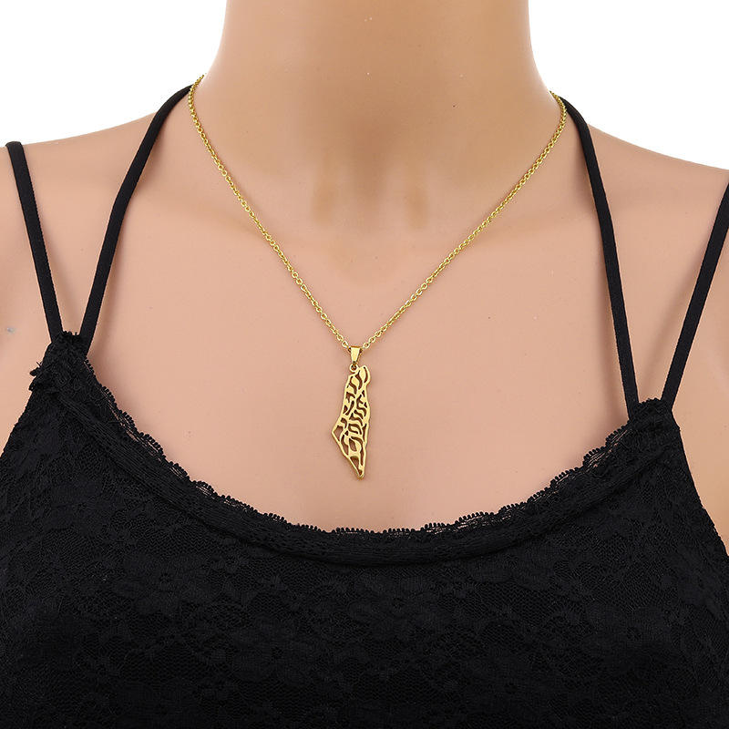 อักษรอาหรับกลวงจารึกคัมภีร์กุรอานแผนที่โลหะดลใจเครื่องประดับสร้อยคอสแตนเลสชุบทอง18K 2024