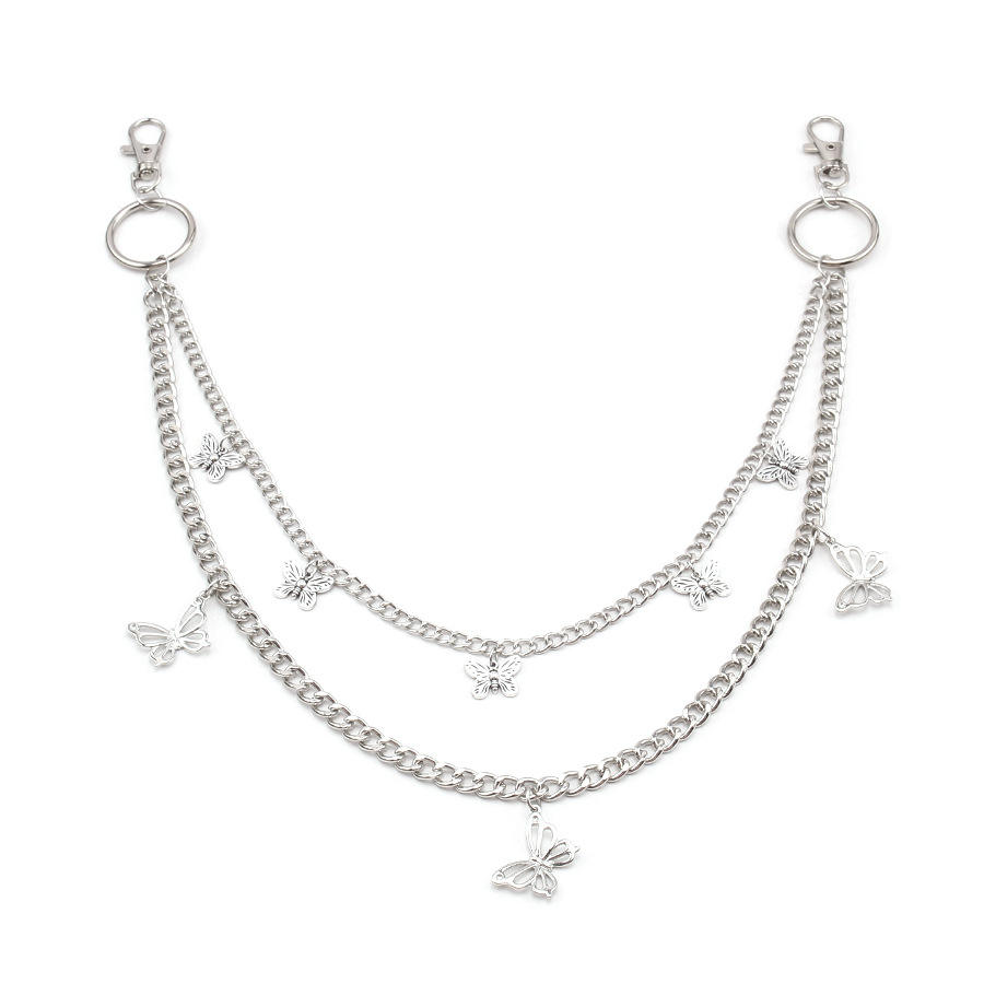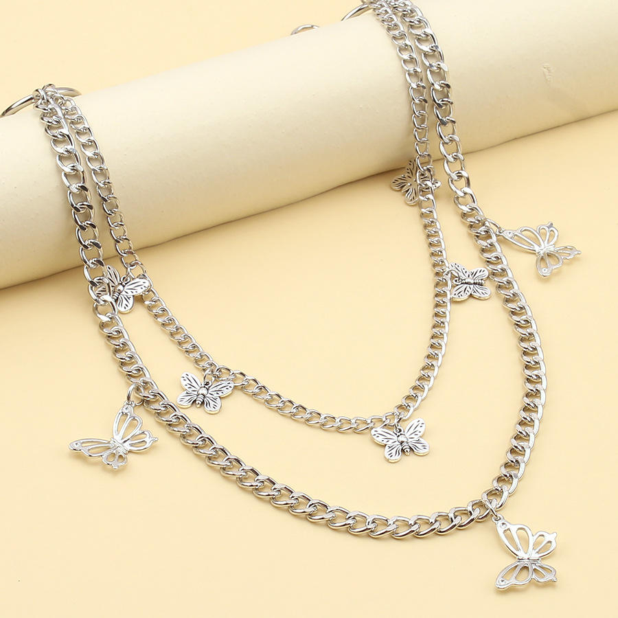 โซ่คาดเอวสองชั้นทำจากสังกะสีอัลลอยสายโซ่แฟชั่นแบบลำลองรูปผีเสื้อกลวง