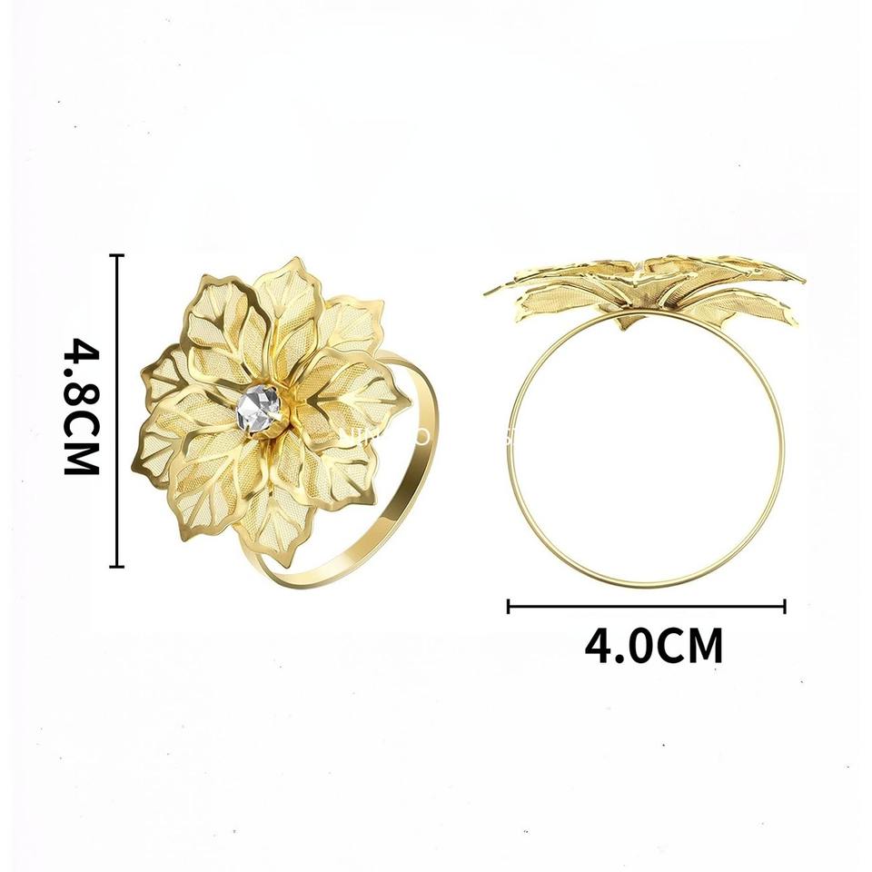 ชุดใส่ผ้าเช็ดปากสีเงินรูปดอกไม้กลวงออกชุดใส่ผ้าเช็ดปากประดับพลอยเทียมสำหรับใช้ในครัวเรือนที่สวยงาม