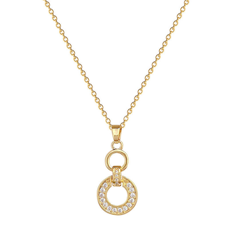 สร้อยคอจี้กลมกลวงเครื่องประดับสแตนเลสชุบทอง CZ หินวงกลมสร้อยคอสำหรับผู้หญิง