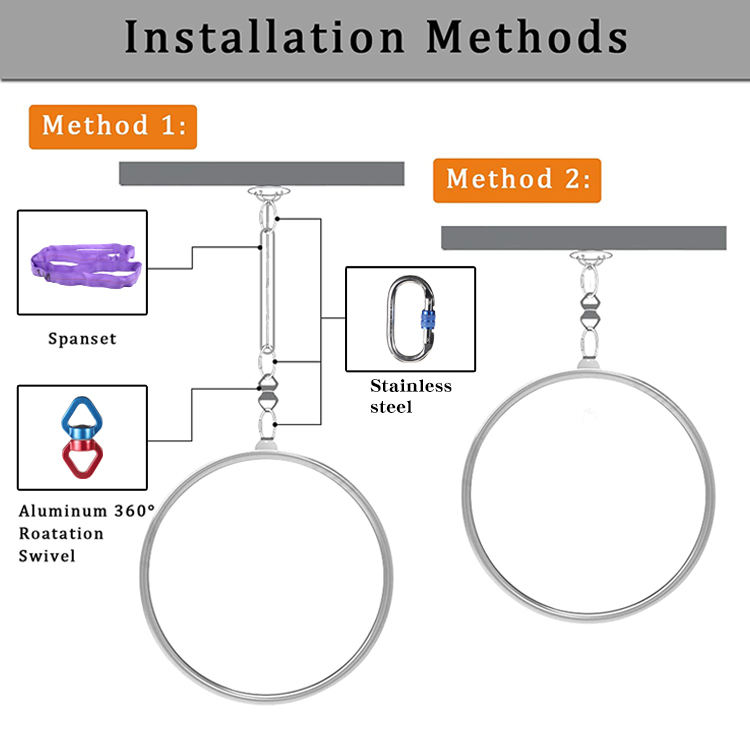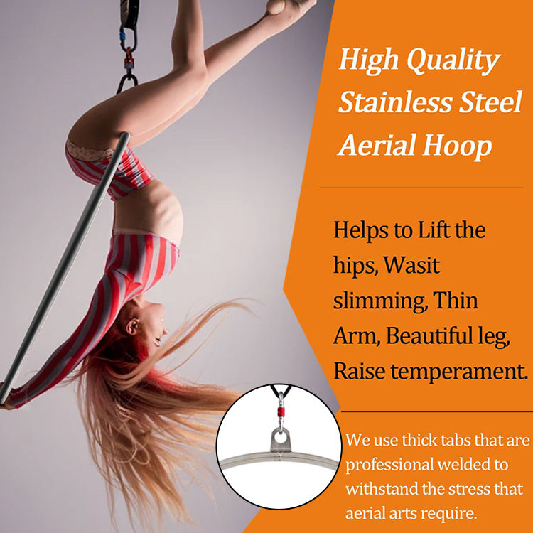 ห่วงวงกลมสแตนเลสแบบกลวงสำหรับกายกรรม โยคะทางอากาศ เสาเต้นรำ และห่วงแอโรบิก