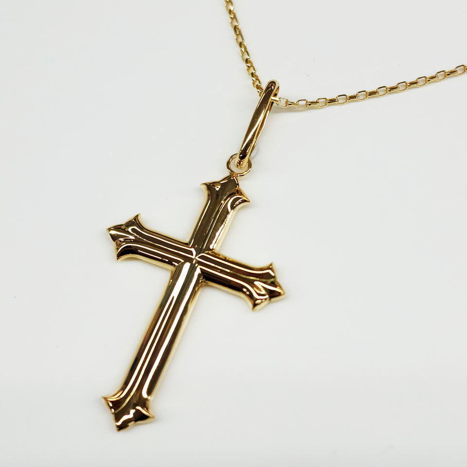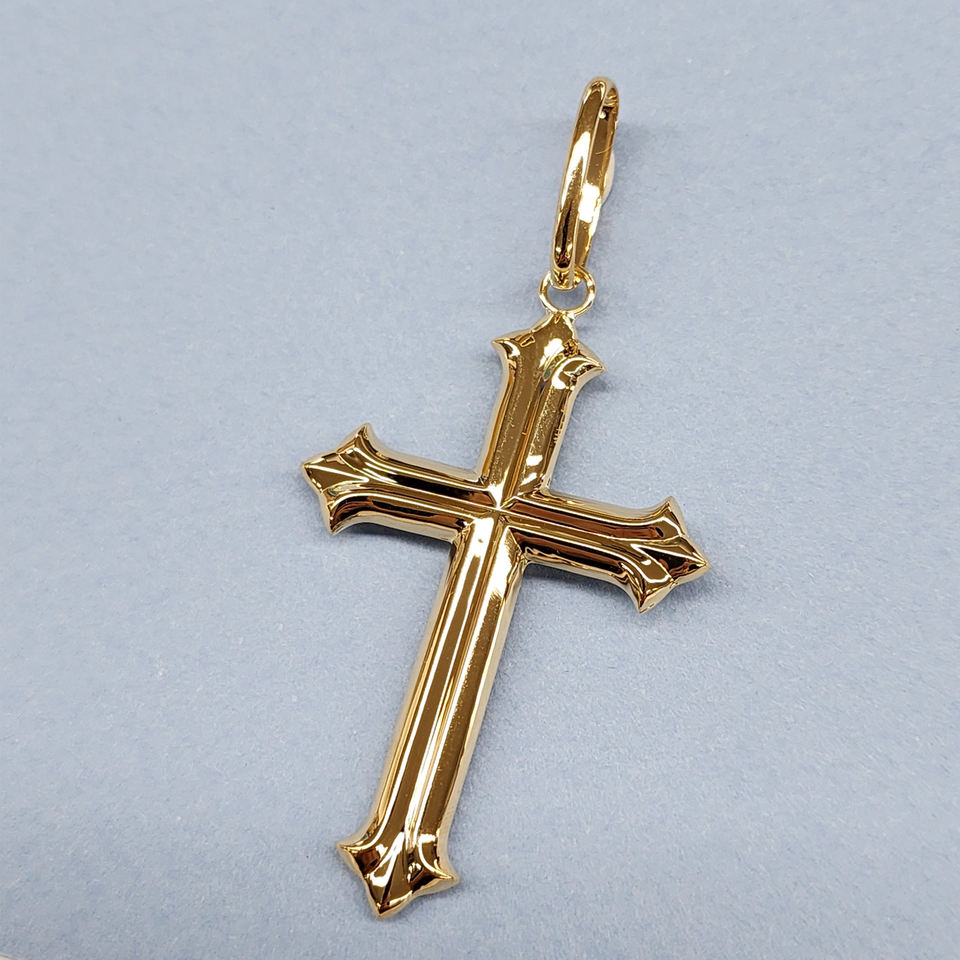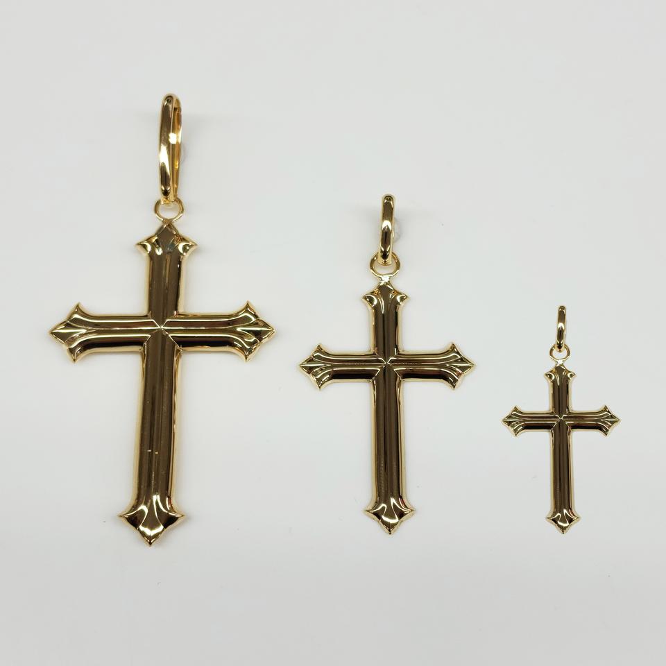 จี้ไม้กางเขนสีทอง18K ดีไซน์เรียบง่ายโครงสร้างกลวงสำหรับการทำเครื่องประดับถาวร