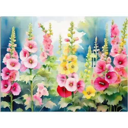 Hollyhock ภาพจิตรกรรมฝาผนังกระเบื้องดอกไม้ห้องครัวห้องน้ำศิลปะผนังผนังผนังผลิตภัณฑ์เซรามิกหินอ่อนภาพจิตรกรรมฝาผนัง
