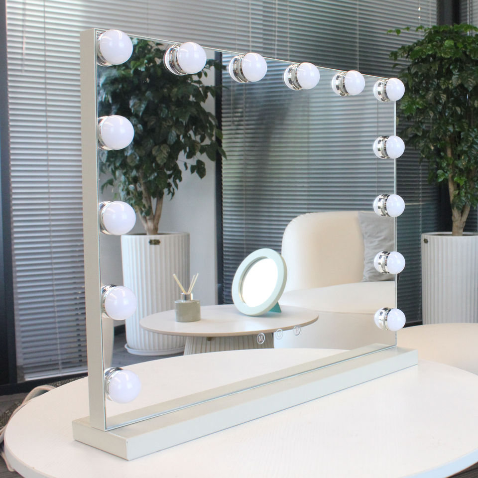 กระจกแต่งหน้าสไตล์ฮอลลีวูดพร้อมหลอดไฟ LED ปรับความสว่างได้ 14 ดวง ประหยัดพลังงาน เหมาะสำหรับตกแต่งห้องนอน ห้องน้ำ และใช้งานได้หลากหลาย