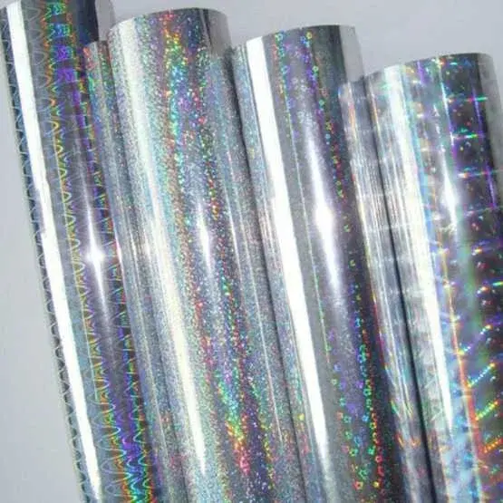 ฟิล์มเมทัลไลซ์สีโฮโลแกรมสำหรับสติกเกอร์แบบกำหนดเอง ป้องกันการปลอมแปลง ใช้สำหรับบรรจุภัณฑ์และของขวัญ