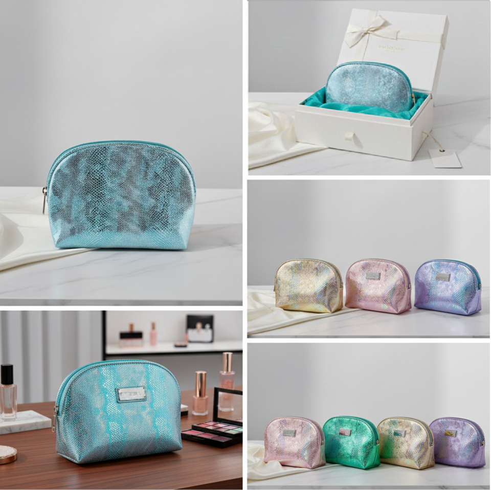 กระเป๋าเครื่องสำอางลายเกล็ดปลาโฮโลแกรม กระเป๋าเปลือกหอยมุกสีรุ้ง หนัง PU สำหรับจัดเก็บเครื่องสำอาง ของแถมความงาม รับทำโลโก้ตามสั่ง