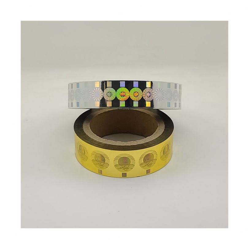 กระดาษโฮโลแกรมสำหรับปั๊มเย็น ฟอยล์ PET สติกเกอร์โฮโลแกรมแบบม้วนสำหรับกระดาษ