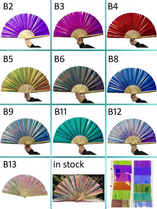 พัดไม้ไผ่ทาสีแบบโฮโลแกรมสำหรับผู้หญิงพัดของขวัญทางธุรกิจพับได้ขนาดใหญ่สำหรับตกแต่งเทศกาลความภาคภูมิใจ