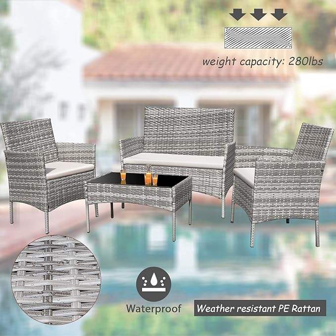 ชุดเฟอร์นิเจอร์หวายกลางแจ้ง 4 ชิ้น ทนทานต่อสภาพอากาศ ยี่ห้อ Homall