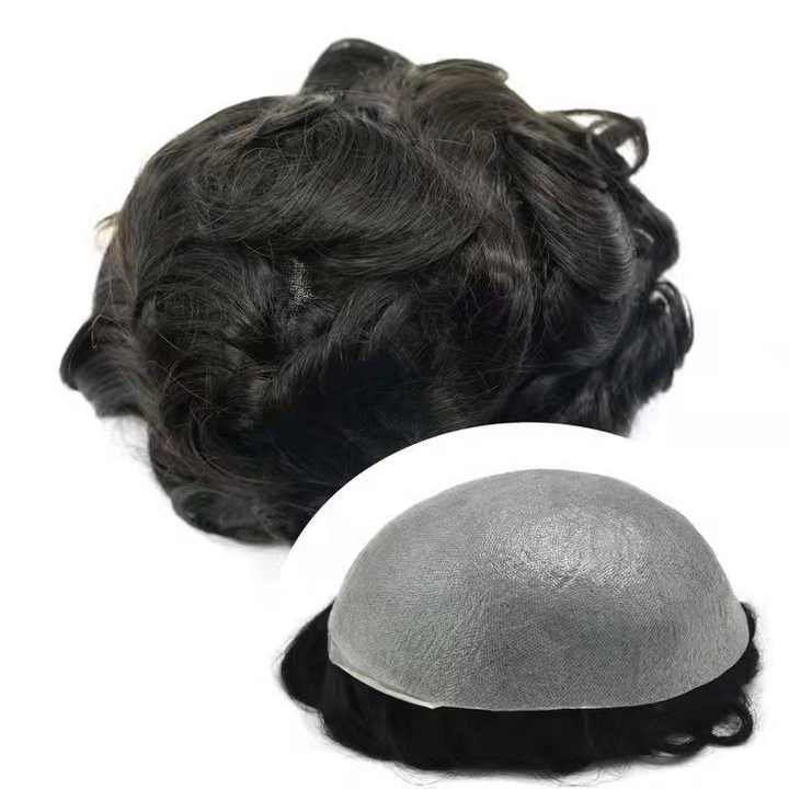 Hombre วิกผมธรรมชาติสำหรับผู้ชาย,ระบบเปลี่ยนผมลอนสำหรับผู้ชายสีธรรมชาติสำหรับเปลี่ยนหนังบาง