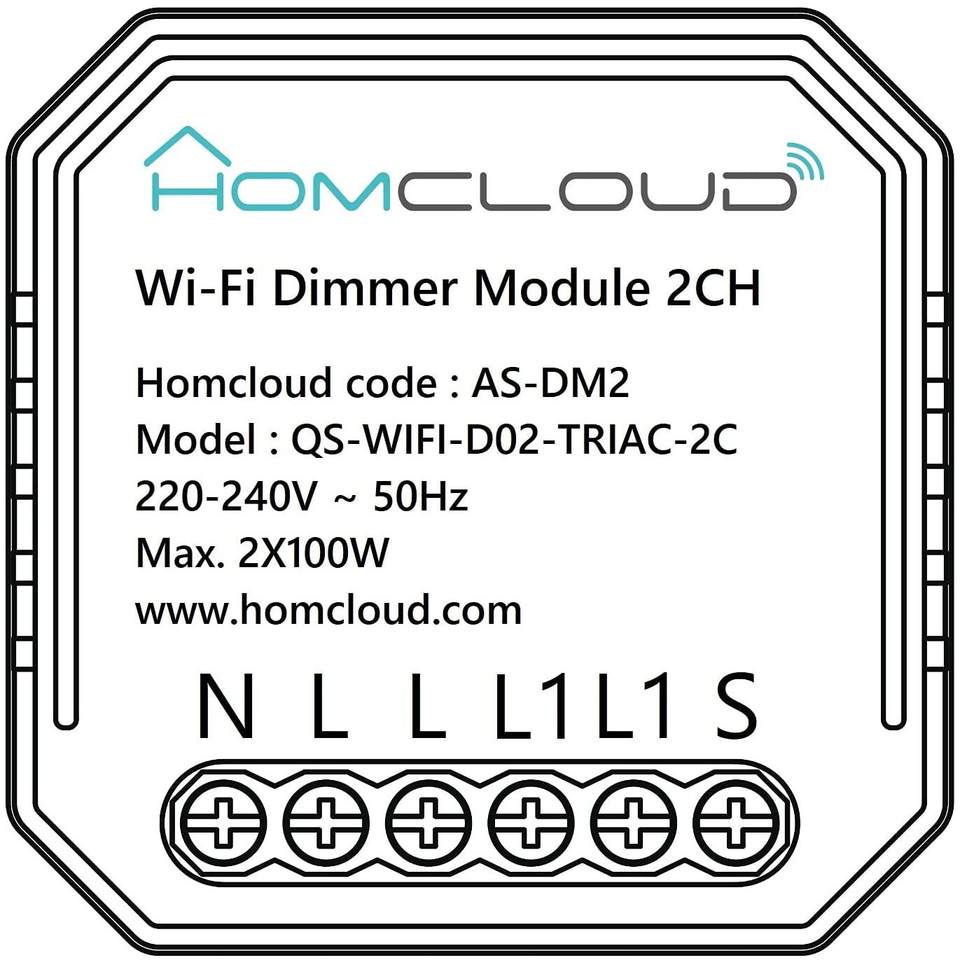 สวิตช์หรี่ไฟอัจฉริยะ Homcloud 2Ch แบบ Wi-Fi 230V ควบคุมผ่านแอพ ติดตั้งแบบฝัง