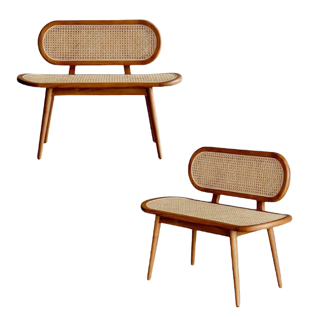 ม้านั่งไม้สักสไตล์โบราณแบบ 2 ที่นั่ง หุ้มด้วยหวาย เหมาะสำหรับใช้ภายในและภายนอกอาคาร ทนทาน เหมาะสำหรับสวนสาธารณะ