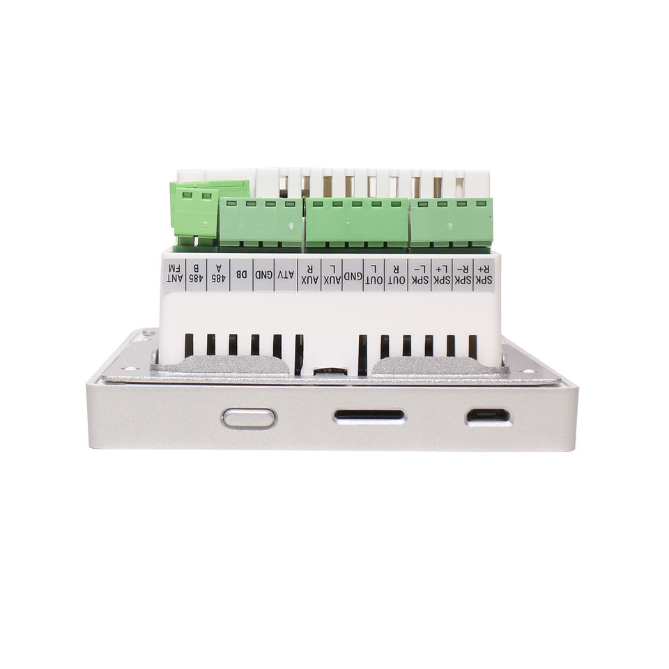 เครื่องขยายเสียงบลูทูธติดผนังขนาดเล็ก 2/4 แชนแนล 25 วัตต์ พร้อมพอร์ต USB, SD และหน้าจอสัมผัส สำหรับลำโพง 2-8 ตัว