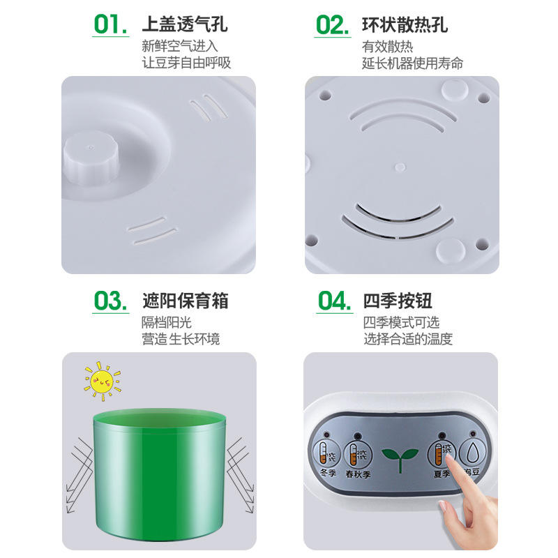Function:Mung beans, soybeans, black beans, red beans, peanut sprouts