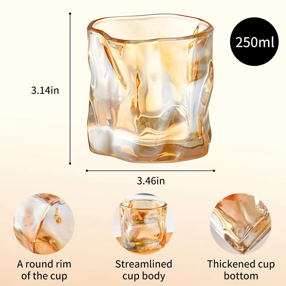 แก้ววิสกี้ทรงแปลกตา 8 ออนซ์ สำหรับวิสกี้ สก็อตช์ ค็อกเทล กาแฟ พร้อมหลอดดูด