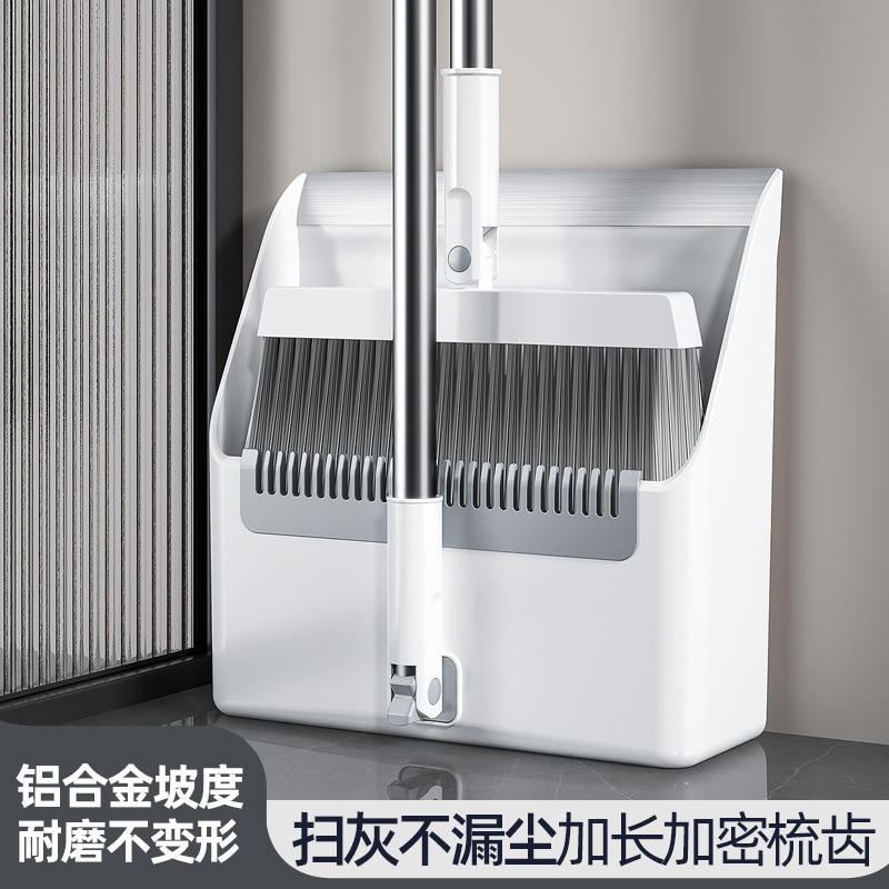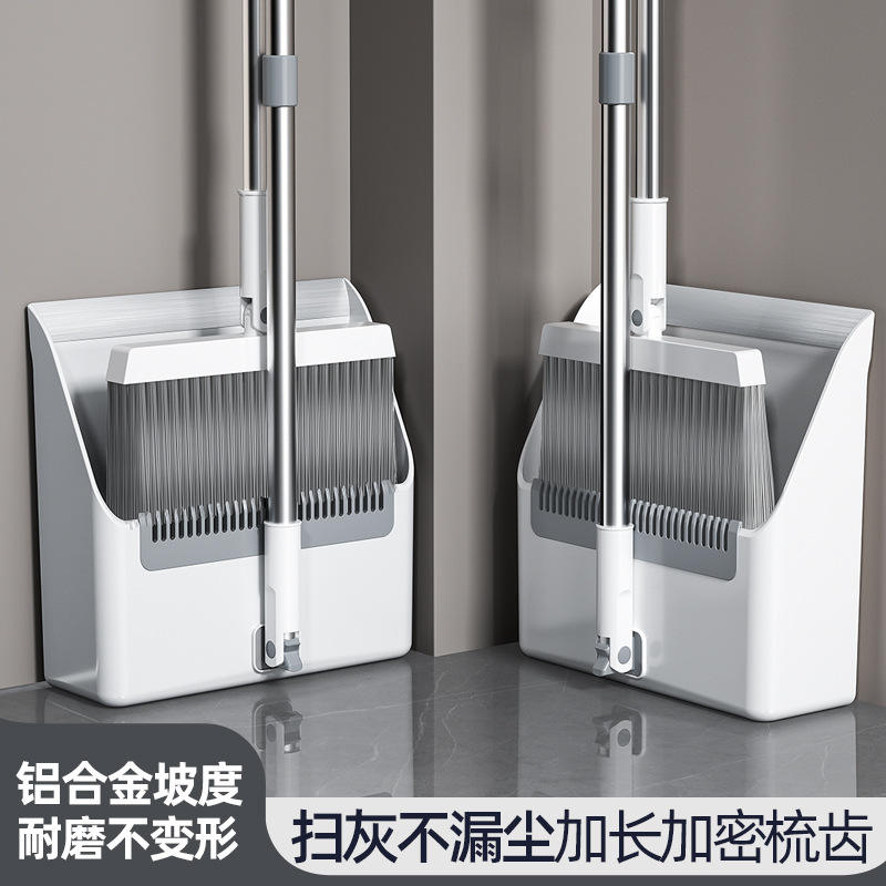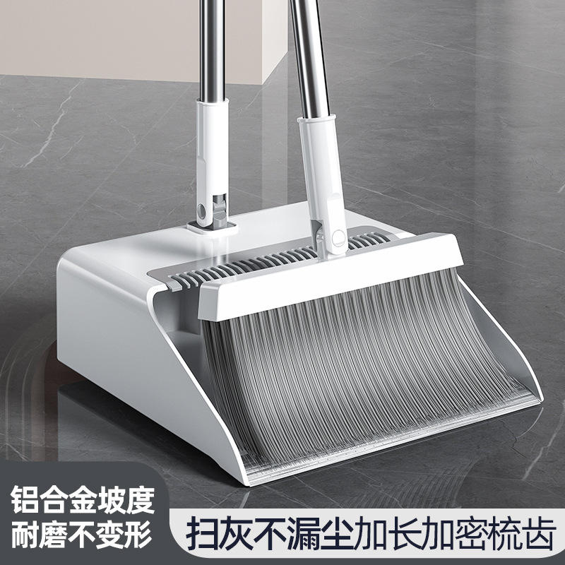 ชุดไม้กวาดและที่โกยผงพร้อมขนแปรงไนลอนหนาแน่นสำหรับทำความสะอาดพื้น สีขาวมะนาว ดีไซน์พับได้