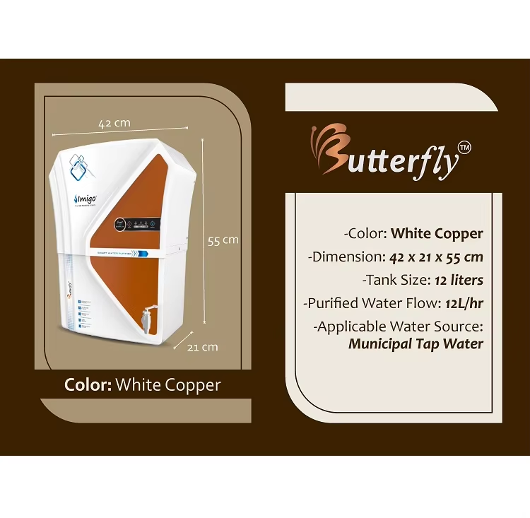เครื่องกรองน้ำระบบรีเวอร์สออสโมซิสแบบผีเสื้อในบ้านพร้อมดีไซน์ทองแดงสีขาวและเทคโนโลยีการกรองอันทรงพลัง