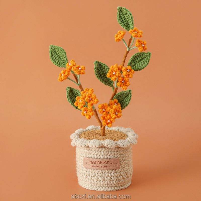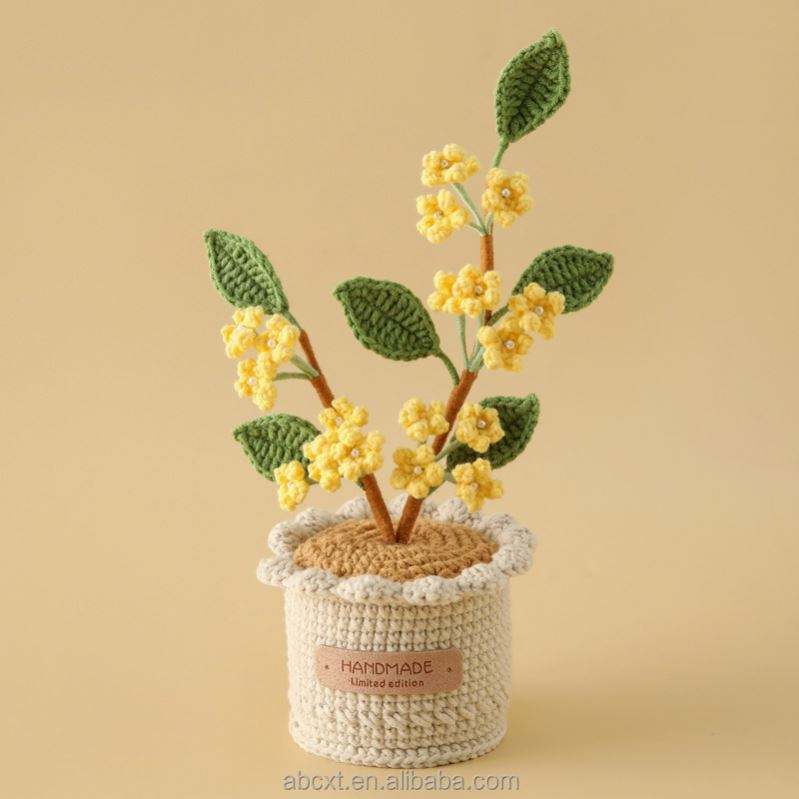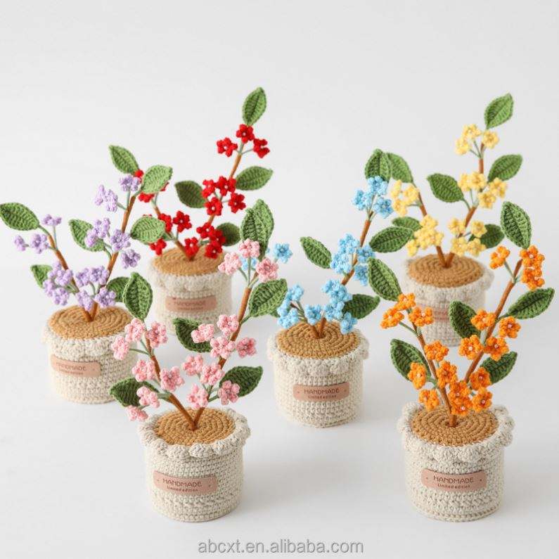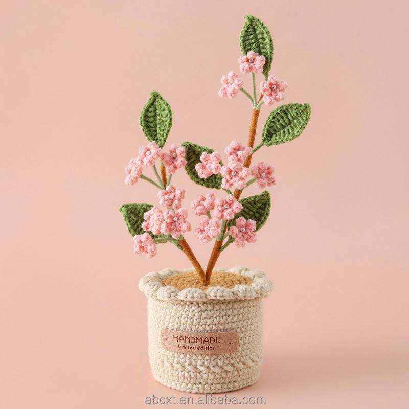 ของตกแต่งบ้าน รถยนต์ งานฝีมือถักโครเชต์ ดอกยิปโซฟิลลา กระถางต้นไม้