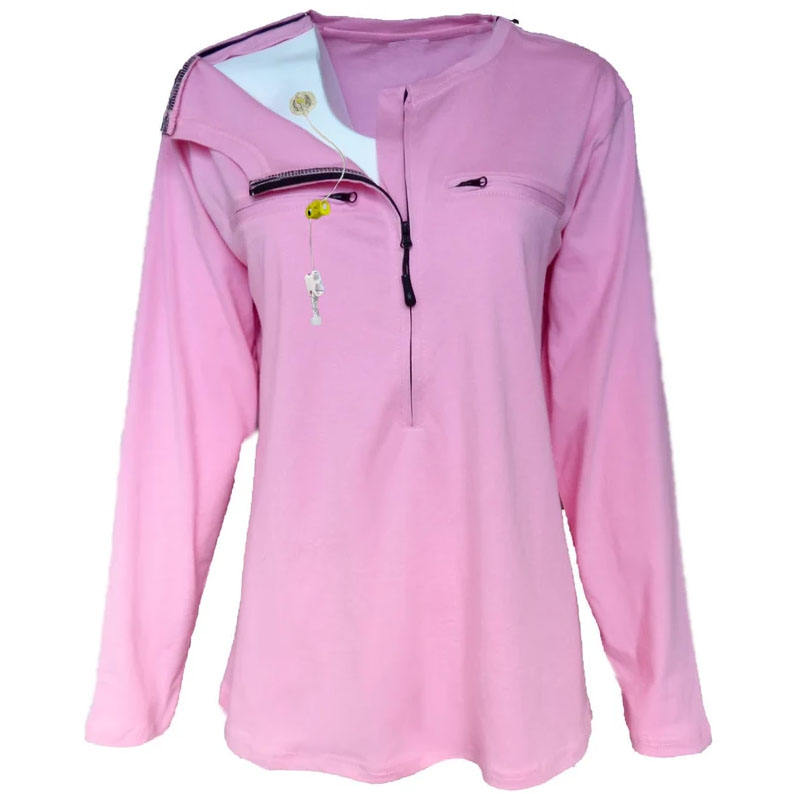 เสื้อสเวตเตอร์ชายแขนยาวสำหรับใส่ในบ้านเสื้อผ้าปรับได้สำหรับการผ่าตัดในโรงพยาบาลประดับพลอยเทียม