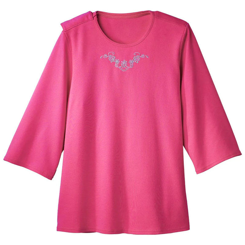 เสื้อปักลายสำหรับผู้หญิงใส่ในบ้านเสื้อคอกลมเปิดหลังได้อย่างง่ายดายเสื้อบำบัดการฟอกเลือดจากคีโม