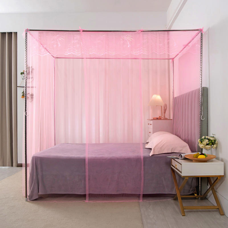 มุ้งกันยุงแบบหนาแบบเก่าประตูเตียงคู่สำหรับบ้าน