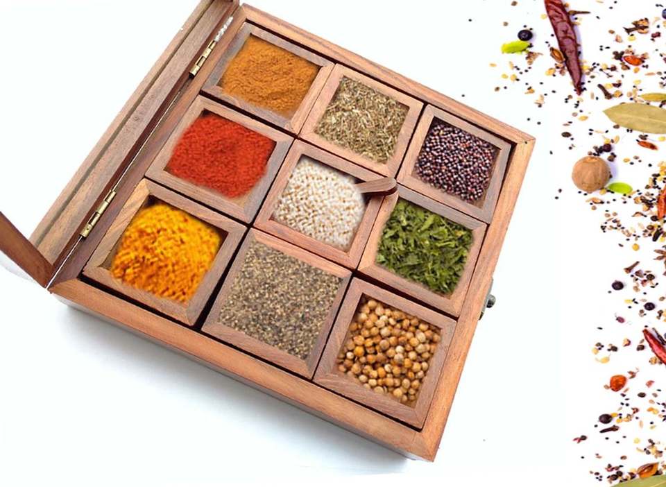 กล่องเครื่องเทศไม้สำหรับจัดเก็บเครื่องปรุงรสและสมุนไพรในครัวเรือนและร้านอาหาร