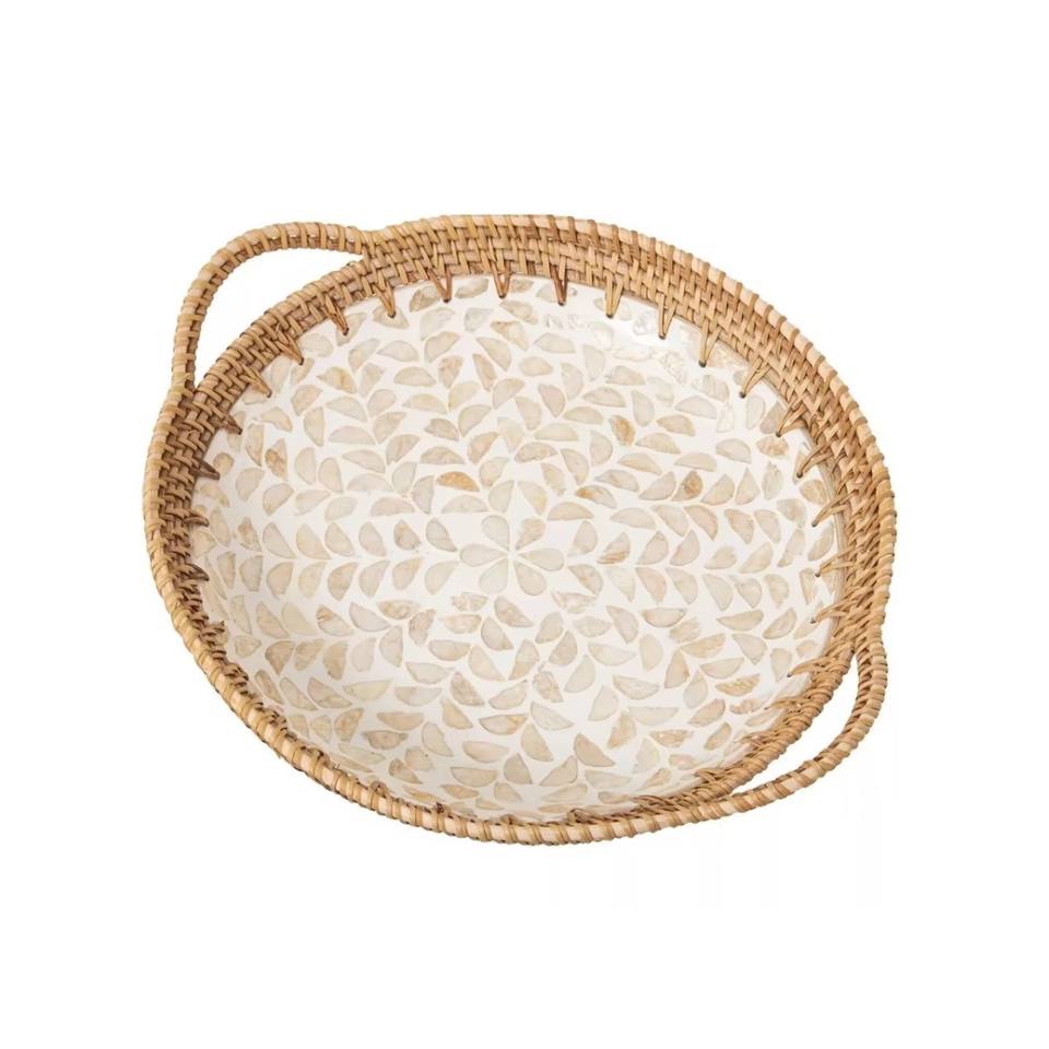 ถาดเสิร์ฟไม้ไผ่และหวายตกแต่งบ้าน ดีไซน์โบฮีเมียนประดับมุก ใช้งานได้หลากหลาย ผลิตในเวียดนาม
