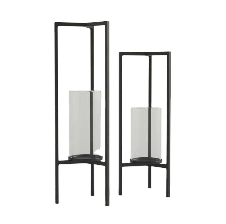 เชิงเทียนโคมไฟตั้งโต๊ะโลหะสีดำสำหรับตกแต่งบ้าน
