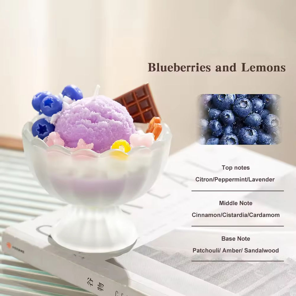เทียนหอมตกแต่งบ้าน ของขวัญทำมือ กลิ่นอโรมาเธอราพี รูปไอศกรีมผลไม้ เทียนหอมจากขี้ผึ้งถั่วเหลือง